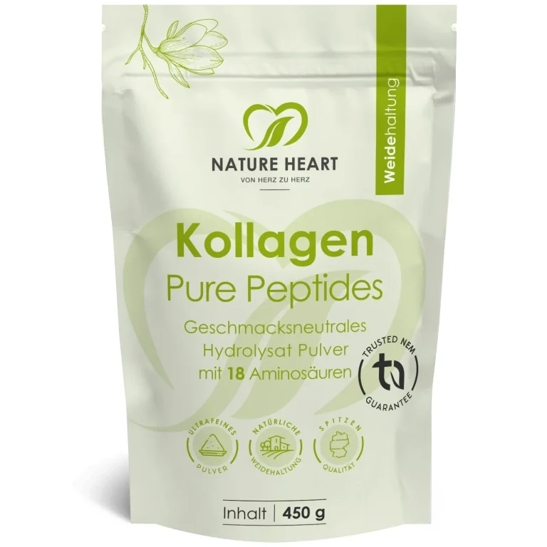 Premium Kollagen Pulver vereint hochwertiges, hydrolysiertes Kollagen aus Weiderindern, natürliches Vitamin C aus Acerola und hochwertige Eierschalenmembran. Diese Kombination wurde sorgfältig zusammengestellt, um ein reines Produkt mit einem ausgewogenen Aminosäureprofil mit 18 Aminosäuren zu schaffen – darunter 7 essenziellen Aminosäuren, die der Körper nicht selbst bilden kann. Kollagen ist ein Strukturprotein, das natürlicherweise in verschiedenen Geweben des menschlichen Körpers vorkommt, so etwa im Bindegewebe, in der Haut, in Knochen, Sehnen und Bändern. Das Premium Kollagenprodukt von Nature Heart enthält Kollagenpeptide der Typen I, II und III. Die Eierschalenmembran ergänzt die Rezeptur um weitere natürliche Proteinbestandteile.