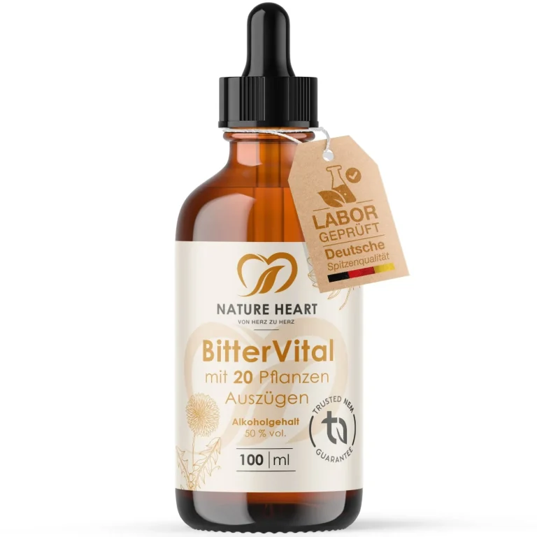100% natürlichen Bitterstoffe mit über 20 Kräuterauszügen haben wir als Vorbild für die rein natürliche Mischung die Natur genommen. In der Natur essen Tiere beispielsweise instinktiv bei Verdauungsproblemen verschiedenste Pflanzen und Kräuter mit einem besonders hohen Bitterstoffanteil. Im menschlichen Körper regen Bitterstoffe verschiedene Funktionen an. Angefangen bei den Geschmacksrezeptoren auf der Zunge bis hin zu den Rezeptoren im Magen-Darm-Trakt oder den Rezeptoren in der Lunge. Treffen Bitterstoffe auf die entsprechenden Rezeptoren werden verschiedene Vorgänge wie die Anregung des Speichels, die Produktion von Magensaft oder die Erweiterung der Atemwege ausgelöst.